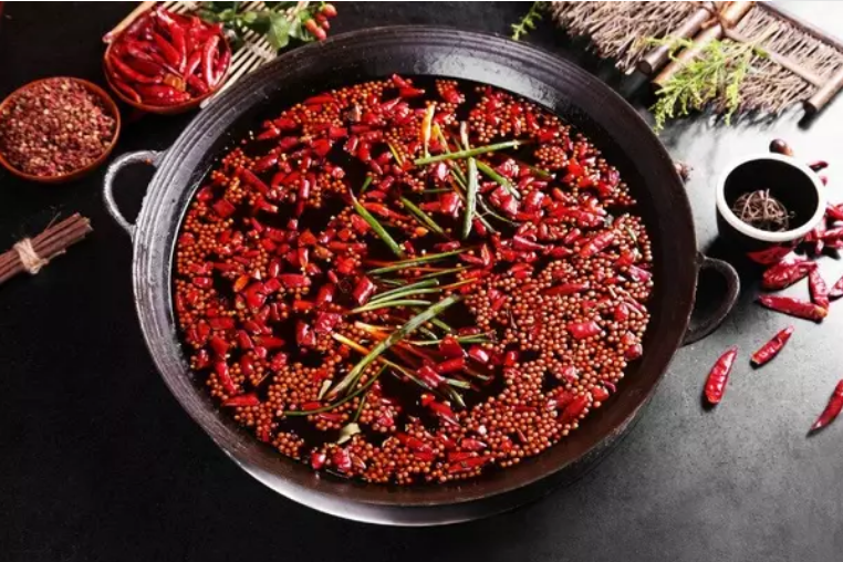 糍粑辣椒放入沸油中后应先用锅铲不停铲动十余分钟,改用小火渐渐炒制,这样能最大极限地炒出糍粑辣椒的香味和辣味。约四十余分钟后(具体时刻应根据油与干辣椒的份额来定,油宽则时刻稍短,油少则时刻稍长),应密切留意其火候:锅中沸油由剧烈翻滚转向鱼子泡状,油的声响由旺火煮稀饭时的声响转为小火煮粥的声响,用炒勺把油舀起往下倒则能听到清脆的声响,油由浑浊转向明澈时(把炒勺悄悄放入油中与油面平行渐渐沉入油中直至装满火锅油,假如勺内油显明澈、无尘渣,则证实油已明澈),便放入香料熬制十余分钟,假如糍粑辣椒由湿润转向油润发亮,用手撕辣椒无耐性,显得很脆,而辣椒看上去似有半透明的感受(带浸色)时,即可将花椒放入拌匀,这时可将锅端离火口,待稍冷后便可将油中料渣(底料)用漏勺捞出,与重庆老火锅油别离盛装,这样便于制造锅底时好把握底料的重量。这儿应留意的是,所加入花椒的份额应根据当地人喜麻的程度来决议。中国喜辣的地方不少,但喜麻的并不多。