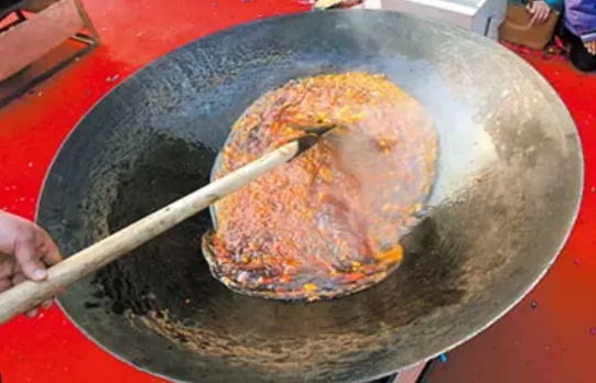 传统的掌邦火锅通常都重用郫县豆瓣,但郫县豆瓣易使火锅汤卤发黑、发浑,视觉效果较差然后影响口感。所以,现在许多火锅店在炒制火锅底料时都少用或不用郫县豆瓣,而主要靠糍粑辣椒来炒制出色泽红亮的色彩和香飘四溢的滋味。因此,糍粑辣椒的制造直接影响着掌邦火锅的风味。